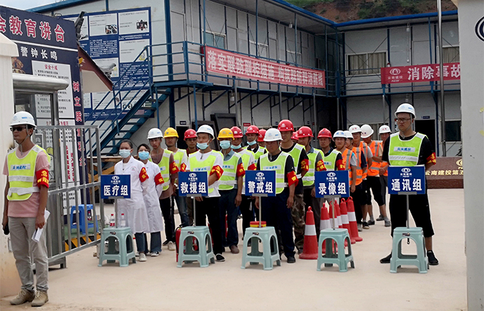 本次演練旨在認(rèn)真貫徹落實(shí)習(xí)近平總書記“從根本上消除事故隱患,有效遏制重特大事故發(fā)生”的重要指示精神, 以“消除事故隱患,筑牢安全防線”為主題,設(shè)置了火災(zāi)事故應(yīng)急救援演練、觸電事故應(yīng)急救援演練、高處墜落事故應(yīng)急救援演練、反恐應(yīng)急演練四項(xiàng)科目。演練活動執(zhí)行前,由項(xiàng)目部編制詳細(xì)演練方案,并由公司安環(huán)部、維穩(wěn)辦,直六部提出多次指導(dǎo)修改意見優(yōu)化演練方案。演練結(jié)合實(shí)際設(shè)置醫(yī)療組、救援組、警戒組、通訊組及錄像組五個(gè)小組,分工明確。