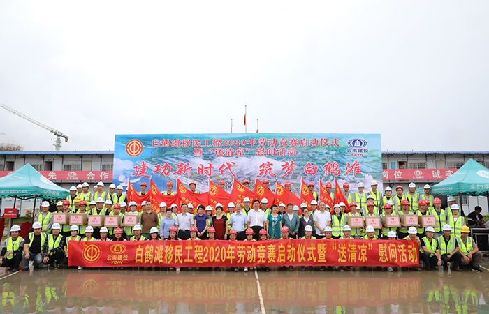 6月29日,由云南省總工會(huì)主辦,昭通市總工會(huì)、云南建投集團(tuán)工會(huì)承辦的白鶴灘移民工程2020年省重點(diǎn)工程勞動(dòng)競(jìng)賽啟動(dòng)儀式暨“送清涼”慰問(wèn)活動(dòng)在巧家縣金沙江白鶴灘水電站移民工程北門安置點(diǎn)現(xiàn)場(chǎng)舉行。云南省總工會(huì)黨組成員、副主席金勇,昭通市人大委員會(huì)副主任、市總工會(huì)主席陶天蓉,集團(tuán)黨委副書記、工會(huì)主席陳文雙及云南建投集團(tuán)24家參建單位職工代表出席啟動(dòng)儀式。