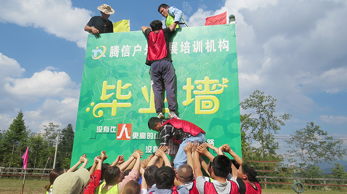 活動(dòng)中,攀爬4米高的垂直畢業(yè)墻是團(tuán)隊(duì)感觸最深的項(xiàng)目,充當(dāng)“人墻”角色的隊(duì)員在咬牙堅(jiān)持著,一次又一次運(yùn)送隊(duì)友上墻,當(dāng)語(yǔ)言交流造成了違規(guī)之后,教練要求隊(duì)長(zhǎng)和副隊(duì)長(zhǎng)要接受30個(gè)俯臥撐處罰,隊(duì)長(zhǎng)和副隊(duì)長(zhǎng)堅(jiān)持做完了俯臥撐,并堅(jiān)定地說(shuō),“我們無(wú)悔因擔(dān)任隊(duì)長(zhǎng)而受到的處罰,我們選擇繼續(xù)挑戰(zhàn)”,正是在團(tuán)隊(duì)的幫助和堅(jiān)持下,大家齊心協(xié)力,在確保安全第一原則下,最終完成任務(wù),順利“畢業(yè)”。