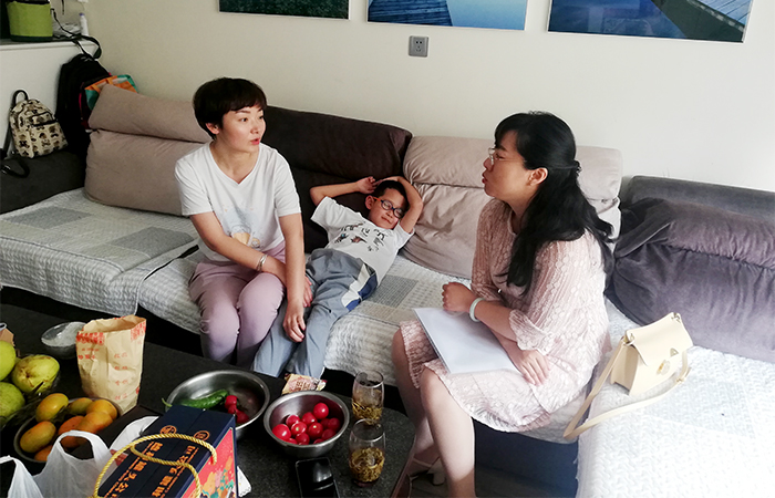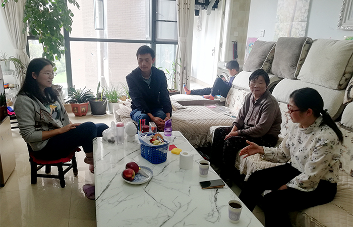 因為工作情況特殊,同樣通過微信視頻接受家訪的,還有直管部工會主席普俊寓的丈夫邵震波。當(dāng)直管部經(jīng)理蔣仁和接通視頻時,電話那頭傳來的聲音讓人勉強能聽清:“我這邊..信號..不..太..好..”在斷斷續(xù)續(xù)的畫面中,微信視頻自動掛斷,幾分鐘后,蔣仁和接到了邵震波回打過來的視頻電話。“不好意思呀,我在外地出差,這邊信號不太好。”“沒事!這次視頻家訪,主要是想了解一下普俊寓上班八小時以外的活動內(nèi)容。”在了解邵震波工作與生活近況后,蔣仁和說到。“一般還是在家照顧孩子,因為我經(jīng)常出差嘛,孩子還是她照顧的多。周末的話除了開會和出差,她有時會帶父母和孩子出去玩。”邵震波微笑答道。視頻結(jié)束后,他還要趕往另一座城市,繼續(xù)他的出差之旅。