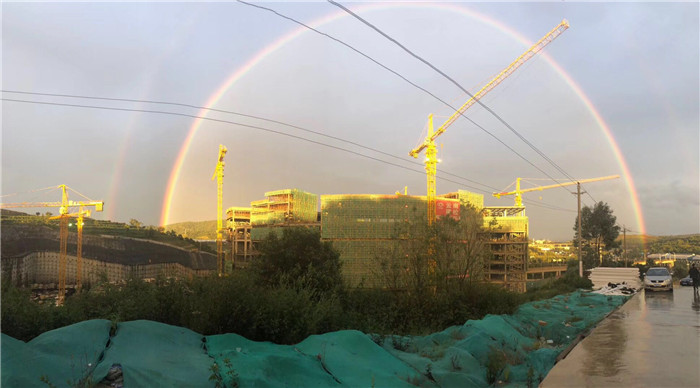 每當(dāng)看到太陽拉到遠(yuǎn)方的地平線上、雨后的一道道彩虹,就覺得工地上的一切似乎都顯得如此生機(jī)勃勃,陣陣風(fēng)迎面吹來,才發(fā)現(xiàn)我其實(shí)早已經(jīng)習(xí)慣了風(fēng)中的沙土,同事們頭上的安全帽映著藍(lán)天白云顯得格外耀眼,這就是我和車行天下汽車城(二期)項(xiàng)目管理人員的工地生活。大家雖然常年漂泊在外,很少回家,但是因?yàn)橛辛祟I(lǐng)導(dǎo)的關(guān)懷,同事的相知、相伴,大家心里早已經(jīng)把車行天下汽車城(二期)項(xiàng)目部每一人當(dāng)成了家人,項(xiàng)目部就是我的第二個(gè)家,一個(gè)有夢(mèng)想、有愛的地方。我相信我們眼前的困難只是暫時(shí)的,我們大家在一起努力,攜手前行,一定能見到雨后的彩虹。