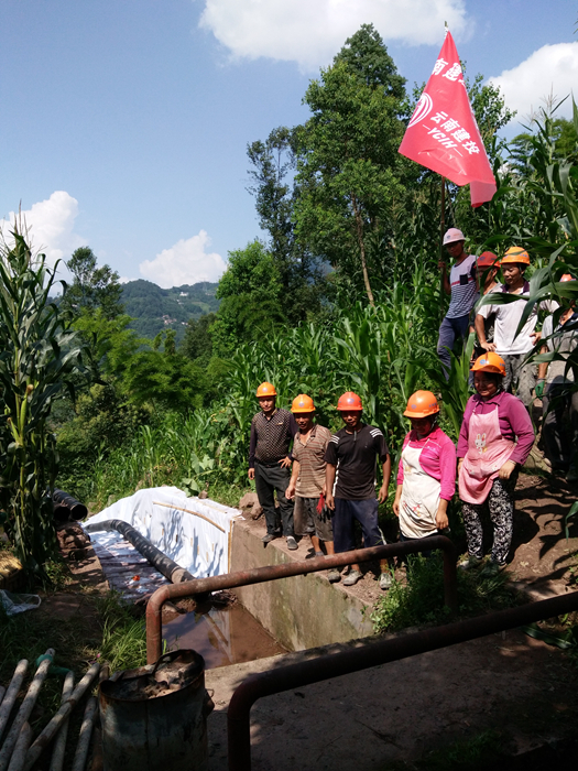 綏江項目部臨時組建了救援隊作為“先頭部隊”趕往受災(zāi)現(xiàn)場,可眼前的一幕讓他們驚呆了,小文橋下方排洪溝阻斷造成鄉(xiāng)鎮(zhèn)道路沖毀三分之一,幾十個村民正冒著暴雨將家中的物資向城里轉(zhuǎn)移;中城鎮(zhèn)鳳池17隊上方泄洪溝已斷裂垮塌,十幾個小伙子正在用鐵鍬冒雨將石塊堵住的泄洪溝挖開?!翱?!你們幾個去幫老鄉(xiāng)搬運轉(zhuǎn)移,你們幾個跟我到下邊去!”“挖機呢?快把挖機師傅都叫來……”盡管暴雨重重地打在臉上和身上,卻沖刷不掉救援隊員鏗鏘有力的吶喊聲。