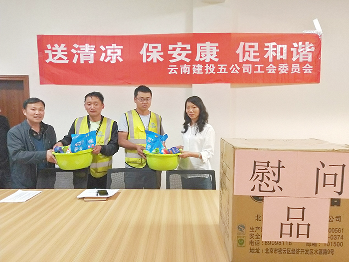 4月15日至17日,公司工會主席冷蕊公司代表公司領(lǐng)導(dǎo)班子率工會工作人員到昭通地區(qū)彝良縣發(fā)界、洛旺兩個(gè)易地扶貧搬遷項(xiàng)目和昭陽區(qū)第二人民醫(yī)院、太平片區(qū)省耕塘等項(xiàng)目,開展“送清涼 保安康 促和諧”活動,為職工發(fā)放了慰問品,并與職工進(jìn)行座談。