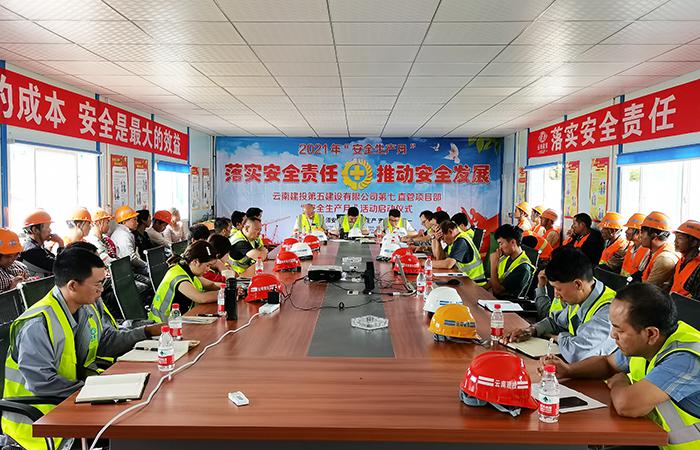 • 6月12日下午,第七直管項目部2021年“安全生產(chǎn)月”活動在師大實訓(xùn)基地項目舉行啟動儀式。建設(shè)單位、監(jiān)理單位、勞務(wù)班組代表以及直管部領(lǐng)導(dǎo)班子、科室負責人、項目部管理人員共計60余人參加此次活動。