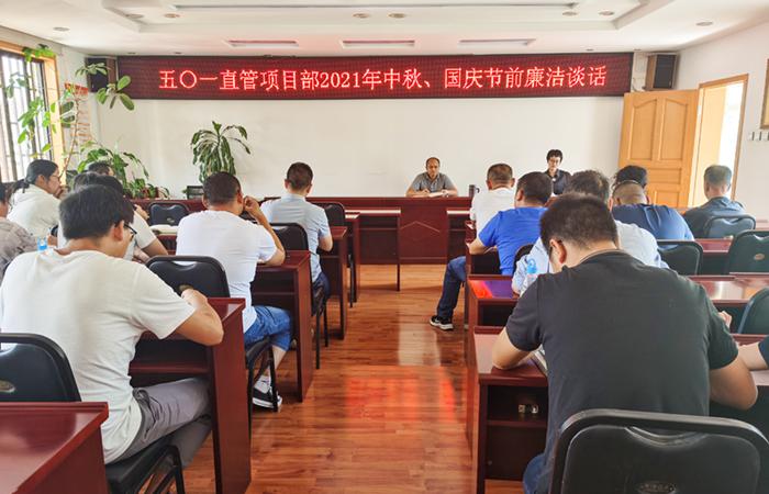 9月6日下午,五〇一直管項(xiàng)目部開展中秋、國慶節(jié)前廉潔談話,會議由黨支部書記王敏主持,直管部班子成員、科室負(fù)責(zé)人及項(xiàng)目經(jīng)理共計(jì)21人參會。