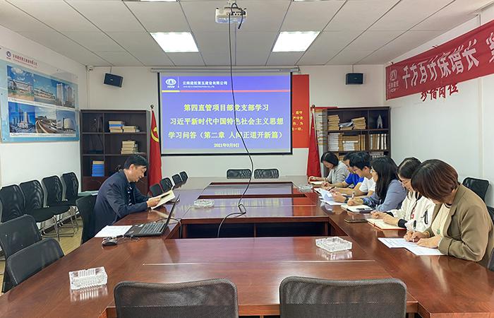 9月9日,第四直管項(xiàng)目部黨支部組織在昆黨員職工學(xué)習(xí)《習(xí)近平新時(shí)代中國(guó)特色社會(huì)主義思想問(wèn)答》第二章 人間正道開(kāi)新篇,共8名黨員職工參與學(xué)習(xí)。