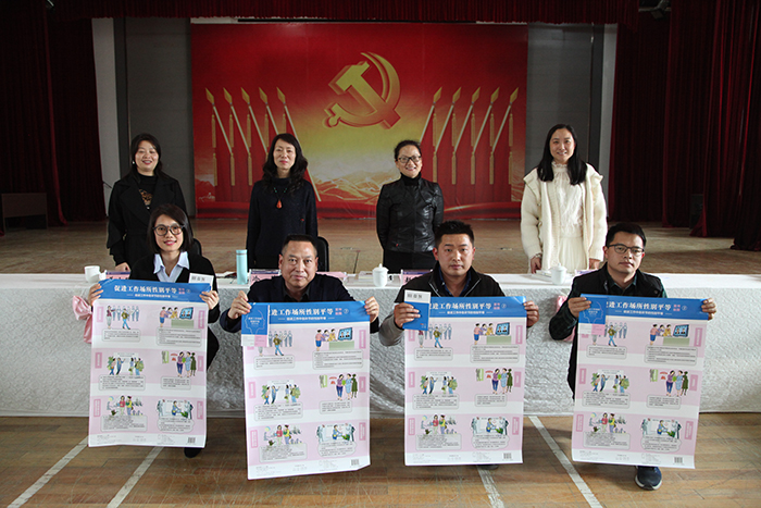 公司緊扣全國(guó)總工會(huì)女職工委員會(huì)2019年女職工維權(quán)行動(dòng)月活動(dòng)“貫徹落實(shí)男女平等基本國(guó)策,促進(jìn)工作場(chǎng)所性別平等”的主題,進(jìn)行了工作場(chǎng)所性別平等法制宣傳會(huì),宣傳了《促進(jìn)工作場(chǎng)所性別平等指導(dǎo)手冊(cè)》,現(xiàn)場(chǎng)4名男工會(huì)主席代表上臺(tái)領(lǐng)取了該手冊(cè)和宣傳掛畫(huà)。