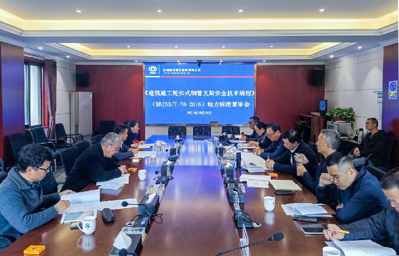 10月28日,公司技術中心組織召開了由公司與北京捷安建筑腳手架有限公司主編的《建筑施工輪扣式鋼管支架安全技術規(guī)程》DBJ53/T-76-2016地方標準復審會議。復審人員由復審專家、省住建廳標準管理部門人員、標準主要編制人員組成,公司董事長王楷銀出席會議。