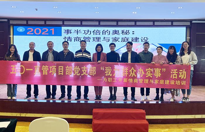 11月5日至6日,五〇一直管項目部黨支部聯(lián)合云南滇中保障房建設(shè)有限公司在經(jīng)貿(mào)賓館三樓共同開展了“我為群眾辦實事”活動,為職工開展《情商管理與家庭建設(shè)》培訓(xùn),云南滇中保障房建設(shè)有限公司總經(jīng)理茶本偉,副總經(jīng)理彭澤利,五〇一直管項目部經(jīng)理陳永忠,黨支部書記王敏等共計100余人參加。