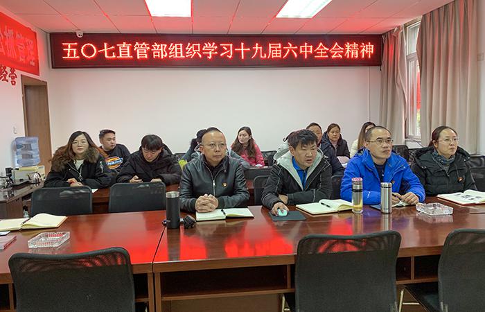 11月24日,五〇七直管部組織開展“黨的十九屆六中全會精神”專題黨課。全體在昆黨員及二線職工19人參加學習。
