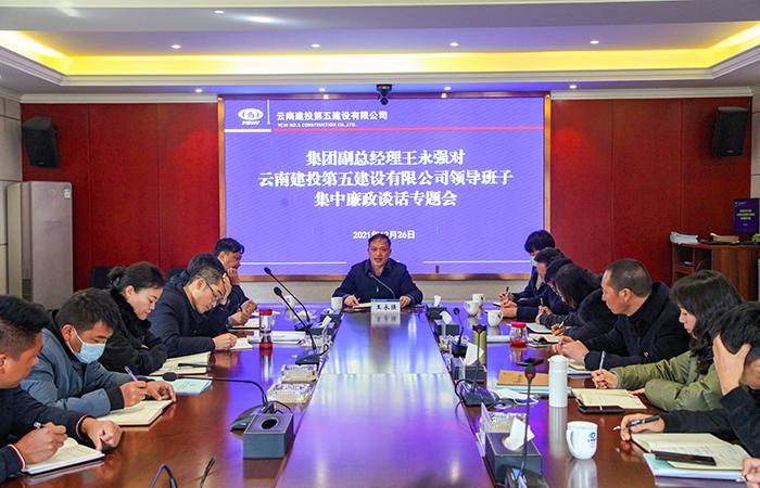12月26日上午,集團(tuán)公司副總經(jīng)理王永強(qiáng)對五公司領(lǐng)導(dǎo)班子進(jìn)行集體廉政談話。