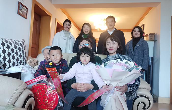 隆冬送祝福,慰問暖人心。1月28日,在新春佳節(jié)即將到來(lái)之際,公司副總經(jīng)理石俊、工會(huì)主席冷蕊、財(cái)務(wù)總監(jiān)楊潔代表公司領(lǐng)導(dǎo)班子,對(duì)堅(jiān)守在海外建設(shè)一線的朱潤(rùn)、徐斌兩位職工家屬進(jìn)行走訪慰問,為他們送去大米、糧油、春聯(lián)和“?!弊值任繂柶泛臀繂柦穑驁?jiān)守在海外施工一線的職工們致以新春的誠(chéng)摯問候和美好祝愿,向?qū)景l(fā)展給予關(guān)心和支持的海外職工家屬表示由衷感謝。