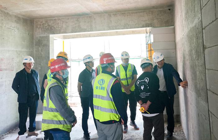 在項目一線,付雋蒼對現(xiàn)場進行了全面檢查,重點逐層檢查了目前處于二次結(jié)構(gòu)和抹灰施工中的1#棟A單元,在檢查過程中付雋蒼詳細了解項目情況“磚砌體頂部后塞口使用什么材料進行封堵,由誰負責(zé)施工”、“木模板施工多少錢一平米”、“樓梯間的吊頂是如何考慮施工的”。在聽取項目相關(guān)人員的匯報后,付雋蒼要求:一是項目部應(yīng)加強團隊建設(shè)及管理,加強對各類合同的層層交底工作,確保每位施工人員對合同內(nèi)容有所了解;二是直管部要加強各在建項目的復(fù)工復(fù)產(chǎn)工作,確保合同工期;三是項目部要加強對現(xiàn)場各種材料的整和工作,以便后續(xù)的周轉(zhuǎn)、使用;四是現(xiàn)場工長要明確自己的職責(zé),做好自己該做的事;五是現(xiàn)場任務(wù)書開具人員應(yīng)知曉現(xiàn)場具體所做工作內(nèi)容,確保任務(wù)書內(nèi)容的準(zhǔn)確性和真實性。