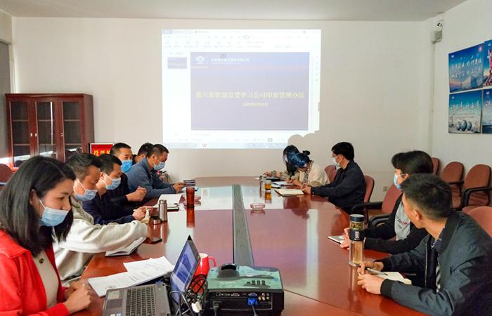 會(huì)上,工會(huì)主席王倩對(duì)建投五建政發(fā)〔2020〕182號(hào)《云南建投第五建設(shè)有限公司關(guān)于印發(fā)印章管理辦法的通知》進(jìn)行了詳細(xì)講解,并針對(duì)工作中存在的具體問題,和大家進(jìn)行了交流。要求印章管理人及使用人要強(qiáng)化自身責(zé)任意識(shí),對(duì)用印資料和印章做好確認(rèn)及保管,并強(qiáng)調(diào)了印章規(guī)范的重要性。