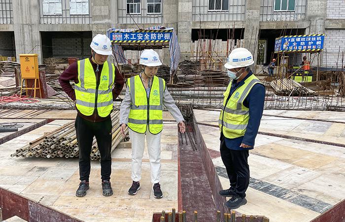 在項目現(xiàn)場,楊潔實地檢查了施工現(xiàn)場安全生產(chǎn)情況及施工開展情況,并就項目進展和下一步工作提出工作要求。
