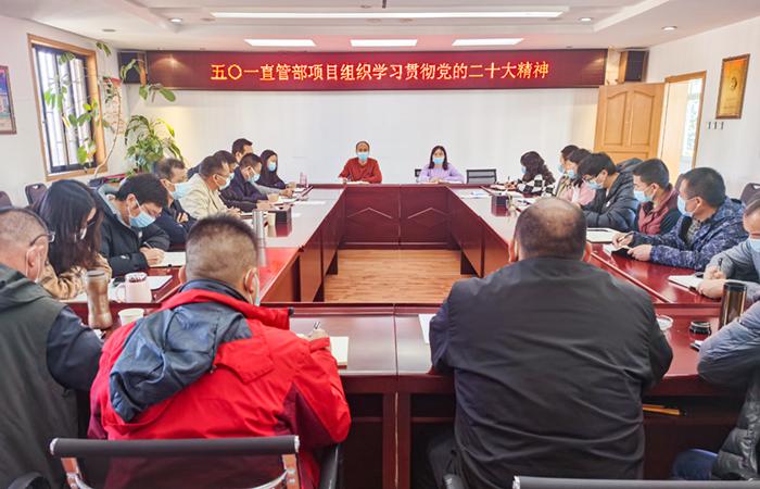 11月21日上午,五〇一直管部以主題黨日的形式學(xué)習(xí)貫徹黨的二十大精神,直管部黨員領(lǐng)導(dǎo)干部、科室負(fù)責(zé)人、項(xiàng)目經(jīng)理22人參加。