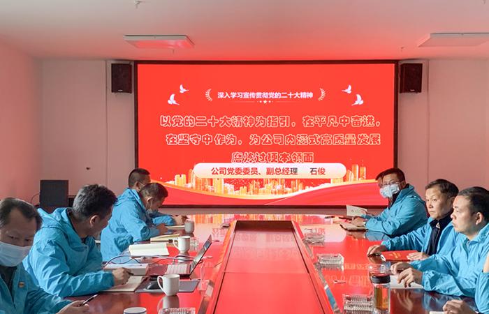 石俊強調,認真學習宣傳貫徹黨的二十大精神,是當前和今后一個時期的頭等大事和首要政治任務。一要用黨的二十大精神武裝頭腦,讓黨的二十大精神成為全體黨員干部干事創(chuàng)業(yè)的思想武器、力量源泉和精神支柱。二要用黨的二十大精神凝魂聚力,按照公司黨委要求,有重點、分步驟、多層次開展學習貫徹黨的二十大精神各項活動,迅速掀起學習貫徹工作熱潮,確保宣傳貫徹到黨員和干部職工心里。三要用黨的二十大精神推動實現(xiàn)各項年度重點工作目標,科學謀劃新思路、新舉措、新方式,不折不扣貫徹落實好黨的二十大的“統(tǒng)籌發(fā)展和安全”的重要要求,以實干推動年度目標的實現(xiàn)。四要結合學習黨的二十大精神,緊緊圍繞事關項目一線生產(chǎn)、安全、技術、質量等重難點問題,開展深入研究,統(tǒng)籌做好年關各項工作,確保取得實實在在的工作成效,以優(yōu)異的工作成績助推公司內涵式高質量發(fā)展。