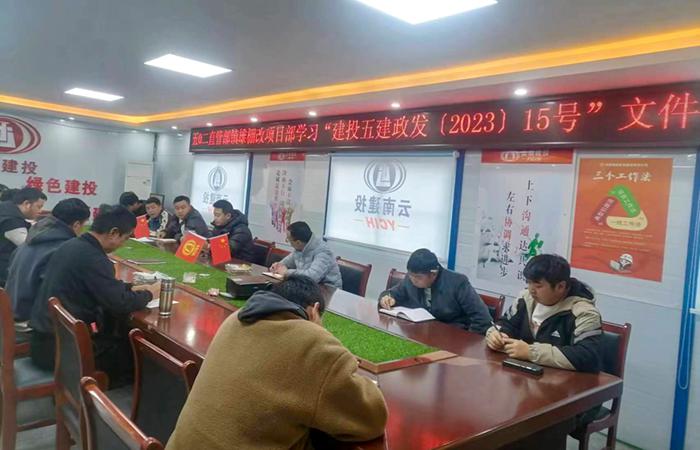2月21日,由五〇二直管部負(fù)責(zé)施工的鎮(zhèn)雄縣2018年棚戶區(qū)改造工程項(xiàng)目在項(xiàng)目部會(huì)議室中集中學(xué)習(xí)《云南建投第五建設(shè)有限公司關(guān)于印發(fā)施工項(xiàng)目目標(biāo)管理責(zé)任書(shū)的通知》(建投五建政發(fā)〔2023〕15號(hào))文件。