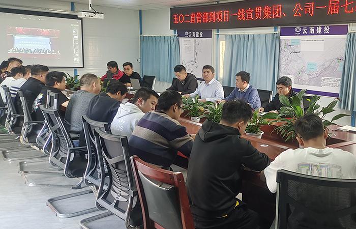 2月26日、28日,五〇二直管項(xiàng)目部分別在石林彝族自治縣民族初級(jí)中學(xué)建設(shè)項(xiàng)目、開(kāi)遠(yuǎn)市小龍?zhí)赌隙礈细囊乒こ添?xiàng)目一線宣貫公司一屆七次職代會(huì)精神。