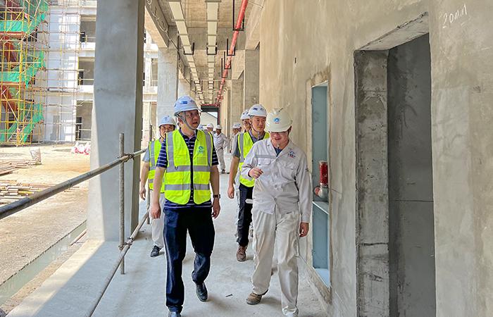 段益慶一行深入施工現(xiàn)場,聽取項(xiàng)目負(fù)責(zé)人對項(xiàng)目生產(chǎn)安全工作開展情況匯報(bào),實(shí)地察看了綜合大樓、學(xué)術(shù)報(bào)告廳等施工部位,詳細(xì)了解項(xiàng)目進(jìn)展、安全管理組織構(gòu)架、現(xiàn)階段存在的困難及現(xiàn)場安全管控等方面的情況,并對下一步生產(chǎn)安全工作提出要求。