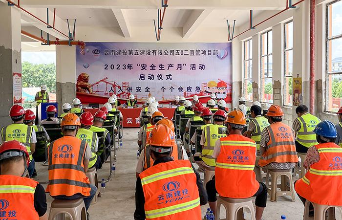6月1日下午,五〇二直管項目部2023年“安全生產月”啟動儀式在石林彝族自治縣民族初級中學建設項目舉行,直管部領導班子、建設單位、監(jiān)理單位代表出席活動并發(fā)言。