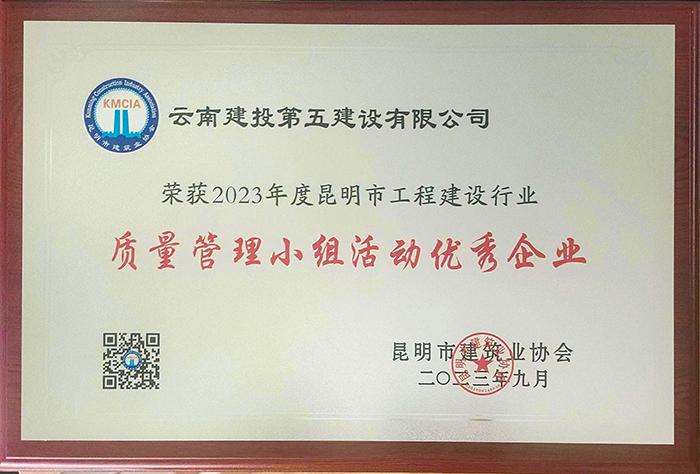 8月30日,昆明市建筑業(yè)協(xié)會(huì)發(fā)布了《關(guān)于公布2023年度昆明市工程建設(shè)行業(yè)優(yōu)秀質(zhì)量管理小組、質(zhì)量管理小組活動(dòng)優(yōu)秀企業(yè)和優(yōu)秀推進(jìn)者的決定》,公司榮獲2023年度昆明市工程建設(shè)行業(yè)質(zhì)量管理小組活動(dòng)優(yōu)秀企業(yè)。五〇一直管項(xiàng)目部求知QC小組“提高金剛砂耐磨地坪面層施工質(zhì)量合格率”課題榮獲一等獎(jiǎng);五〇二直管項(xiàng)目部孤狼QC小組“提高外墻薄抹灰一次成型合格率”課題和隧道直管項(xiàng)目部峻嶺雄鷹QC小組“提高預(yù)制T梁鋼筋定位尺寸精準(zhǔn)率”課題榮獲二等獎(jiǎng)。