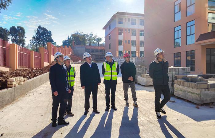 在石林民族中學(xué)項目,蔣璽實地查看項目現(xiàn)場,詳細了解項目當(dāng)前開展情況及一線職工生活狀況,對項目進度、成本、安全、質(zhì)量管控等方面工作進行指導(dǎo)。