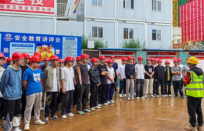 為保障此次校企合作活動安全、高效進行,項目部提前周密部署,制定了詳細的參觀流程和安全預(yù)案。進入現(xiàn)場前,項目安全員對全體師生開展嚴格的入場安全技術(shù)交底,強調(diào)現(xiàn)場注意事項,確保師生安全。