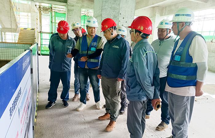 趙建兵一行深入施工現(xiàn)場(chǎng),實(shí)地查看項(xiàng)目現(xiàn)場(chǎng)安全文明施工、臨時(shí)用電設(shè)施管理、施工實(shí)體質(zhì)量及項(xiàng)目文化建設(shè)等情況,對(duì)項(xiàng)目現(xiàn)場(chǎng)標(biāo)準(zhǔn)化施工、安全質(zhì)量管控措施及重點(diǎn)部位安全防護(hù)工作成效給予充分肯定。雙方圍繞項(xiàng)目現(xiàn)場(chǎng)平面布局優(yōu)化、配變電專項(xiàng)設(shè)計(jì)施工招標(biāo)、裝飾裝修方案確定等重要事宜展開(kāi)深入研討。檢查組細(xì)致查閱了相關(guān)資料,認(rèn)真聽(tīng)取施工難點(diǎn)匯報(bào)及解決措施,進(jìn)一步明確了項(xiàng)目后續(xù)管理工作思路。