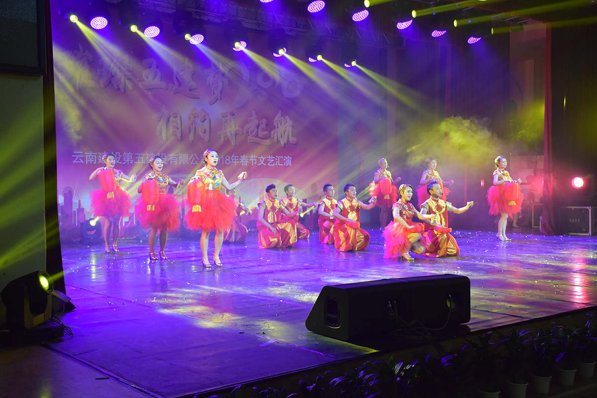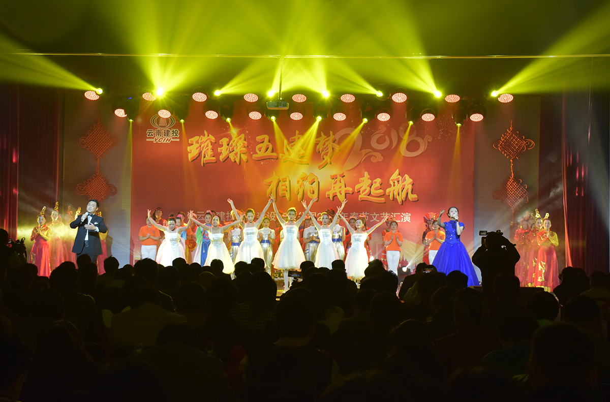 從民族群舞《迎新歡騰》開場,喜慶的春節(jié)元素就深深的融入到整個演出當(dāng)中。節(jié)目緊緊貼合公司發(fā)展實際,情景詩話《不忘初心 砥礪前行》以全新的方式闡釋了公司2017年取得的輝煌成績,奏響了公司2017年的華美樂章!舞蹈《工地奏鳴曲》和詩朗誦《一封家書》再現(xiàn)了工地上的酸甜苦辣,字里行間傳遞真情;快板說唱《展望2018》以歡快的形式把走進(jìn)新時代的強(qiáng)音敲響,唱出了打造成為雙百億企業(yè)的信心和決心;男女合唱《不忘初心》展現(xiàn)了五建人眾志成城、放歌新時代的精神風(fēng)貌。最后,演出在《建投之歌》大合唱聲中圓滿結(jié)束。