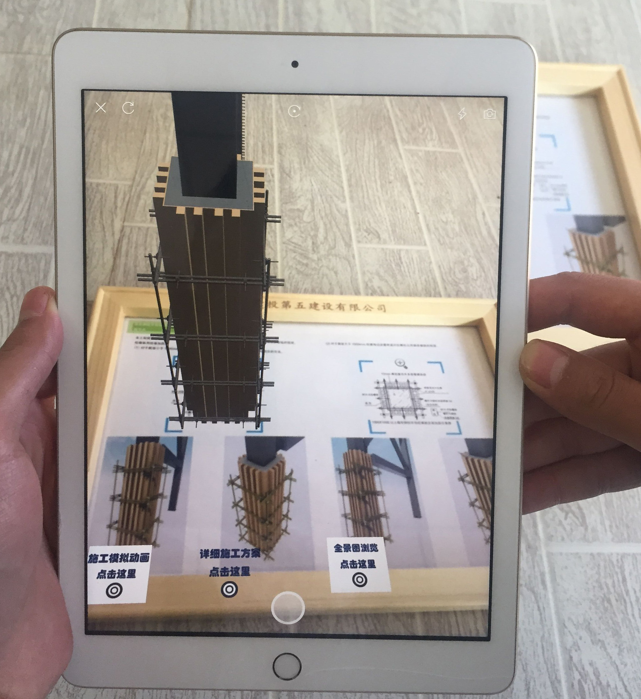 來到車行天下汽車城(二期)項(xiàng)目的AR技術(shù)展示區(qū),可以看到一個(gè)個(gè)畫框擺在旋轉(zhuǎn)臺上,當(dāng)記者用平板電腦的軟件對準(zhǔn)其中一張圖片,一組立體的鋼構(gòu)件就從平板電腦的屏幕上跳躍出來。隨著旋轉(zhuǎn)臺的轉(zhuǎn)動(dòng)可以從不同角度查看鋼結(jié)構(gòu)構(gòu)件的各個(gè)細(xì)節(jié),讓人興趣盎然。