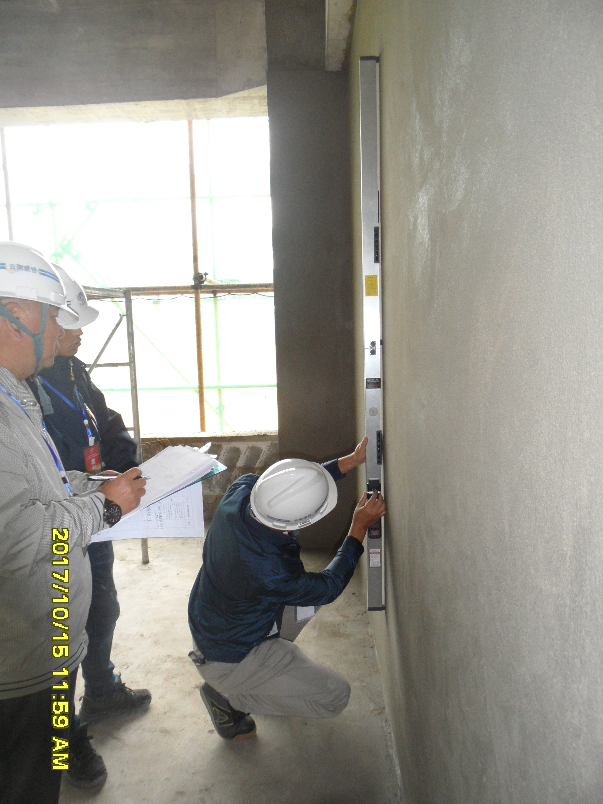 管理人員對抹灰質(zhì)量進(jìn)行檢驗(yàn)
