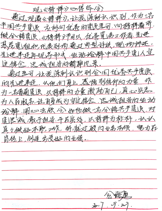 此次觀看節(jié)目的人員涉及機(jī)關(guān)各黨小組黨員、直管部班子領(lǐng)導(dǎo)、二線科室負(fù)責(zé)人及項(xiàng)目部負(fù)責(zé)人和普通職工共600余人,除集中觀看外,不少職工也自行開展了學(xué)習(xí)。觀看結(jié)束后,各黨支部結(jié)合實(shí)際工作開展了交流討論,并組織職工撰寫心得體會。