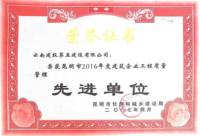 技術(shù)支持: 方森科技 5月11日,昆明市住房和城鄉(xiāng)建設局召開了2016年度昆明市建設工程質(zhì)量管理、安全生產(chǎn)、文明施工總結(jié)暨2017年工作部署會。會上,公司榮獲昆明市2016年度建設企業(yè)安全生產(chǎn)“先進單位”、工程質(zhì)量管理“先進單位”兩項榮譽,由直二部施工的云南省2013-2017年城市棚戶區(qū)改造省級統(tǒng)貸項目(六期)安寧太平新城二期一標工地分別榮獲2016年度昆明市建設施工安全生產(chǎn)標準化工地和昆明市建筑工程2016年度整治工地亂象暨文明施工優(yōu)良工地兩項榮譽。第三直管項目部施工的云南省少數(shù)民族語言節(jié)目譯制中心(含演播廳)項目、五○六直管項目部施工的云南煙葉醇化倉儲中心項目(一期)3#醇化庫及4#醇化庫分別獲評2016年度昆明市建設施工安全生產(chǎn)標準化工地,丁晨然、喻心偉、錢光能、趙連飛榮獲昆明市2016年度建筑企業(yè)安全生產(chǎn)先進個人,韓葉龍、姚鵬榮獲昆明市2016年度建筑企業(yè)工程質(zhì)量管理先進個人。