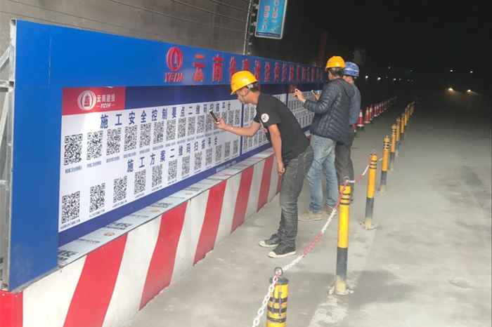 二維碼掃描平臺位于古那灣2號隧道進(jìn)口端洞外的休息區(qū)及洞口人車分流區(qū)的人行道上,涵蓋施工安全控制要點(diǎn)、施工方案、作業(yè)指導(dǎo)書、安全技術(shù)交底、安全操作規(guī)程等施工工藝、規(guī)范和安全、技術(shù)、質(zhì)量管理內(nèi)容。進(jìn)入施工現(xiàn)場前如需查詢相關(guān)資料,可直接通過手機(jī)掃描二維碼進(jìn)行查詢,操作非常方便。就算施工員不小心忘記了施工技術(shù)交底中的某個數(shù)據(jù),只要輕松掃一掃就能全部“收入囊中”,巧當(dāng)施工現(xiàn)場的“教科書”。