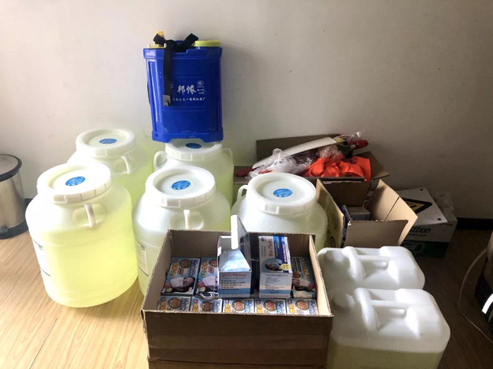 物業(yè)公司在復(fù)工前就采購了130支體溫槍,125桶消毒液、65個(gè)噴霧器、45個(gè)護(hù)目鏡、23000個(gè)口罩、22套防護(hù)服、2箱一次性手套,確保物資供應(yīng)充足。復(fù)工第二日,公司給每一個(gè)在崗職工發(fā)放了10個(gè)一次性口罩。