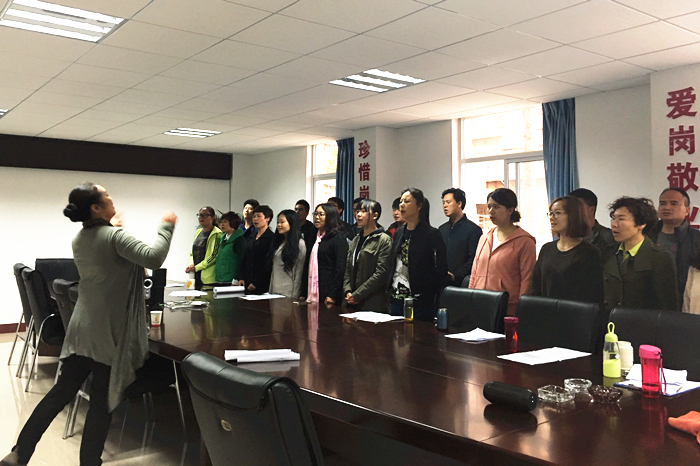 自4月7日合唱團(tuán)成立以來,每天下班后,隊(duì)員們就全身心地投入排練,多個(gè)聲部反復(fù)配合,不厭其煩地練唱每一句歌詞,力求在歌詠比賽中獻(xiàn)出最精彩的合唱表演。