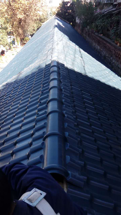 公司68幢宿舍是磚木平房結(jié)構(gòu),始建于1958年,建筑面積227.59平方米,屋面均是小青瓦,風(fēng)化破落漏雨情況嚴(yán)重,檀木腐朽。物業(yè)公司本著安全第一、節(jié)約成本、為職工所想的原則,在短短4天時(shí)間內(nèi)將68幢宿舍屋面更換為重量輕、抗老化、維修便捷的復(fù)合樹(shù)脂瓦。