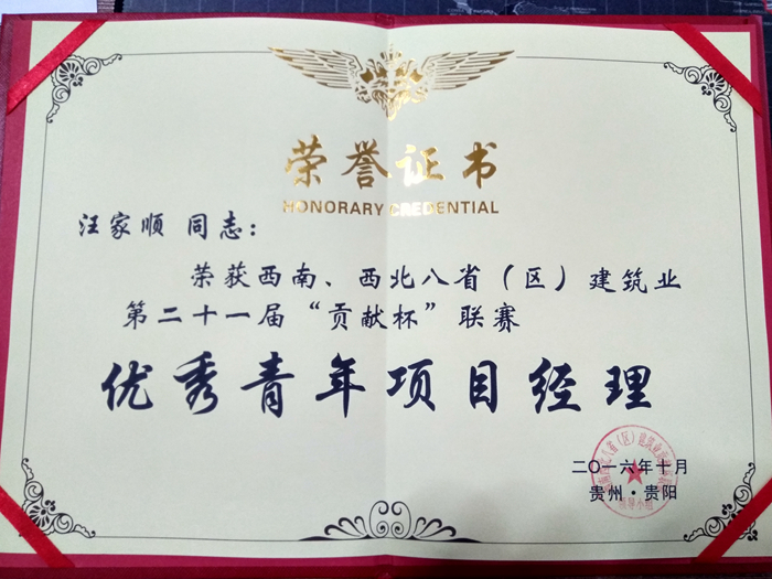 在聯(lián)賽中,來自公司五〇五直管項目部的汪家順同志被評為本次聯(lián)賽的“優(yōu)秀青年項目經(jīng)理”。汪家順于2004年7月畢業(yè)參加工作,先后經(jīng)歷了10個項目,現(xiàn)擔(dān)任公司五〇五直管項目部副經(jīng)理、大理滿江怡景尚居二標(biāo)段項目經(jīng)理。汪家順在工作的12余年間,積極進取、勤奮好學(xué)、認(rèn)真工作,收獲了公司多項榮譽。