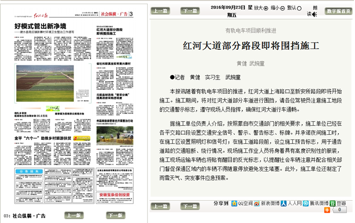 紅河州廣播電視臺、紅河日報(bào)、紅河旅游微信公眾號等媒體發(fā)布了該路段圍擋施工報(bào)道,方便市民了解道路信息及施工現(xiàn)場圍擋等注意事項(xiàng),合理規(guī)劃出行。