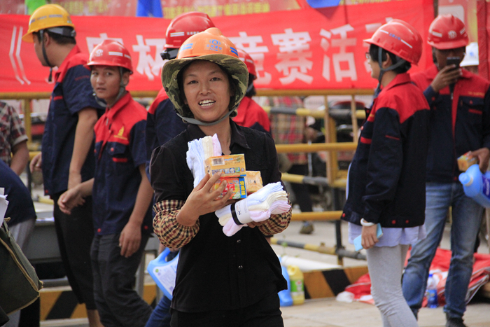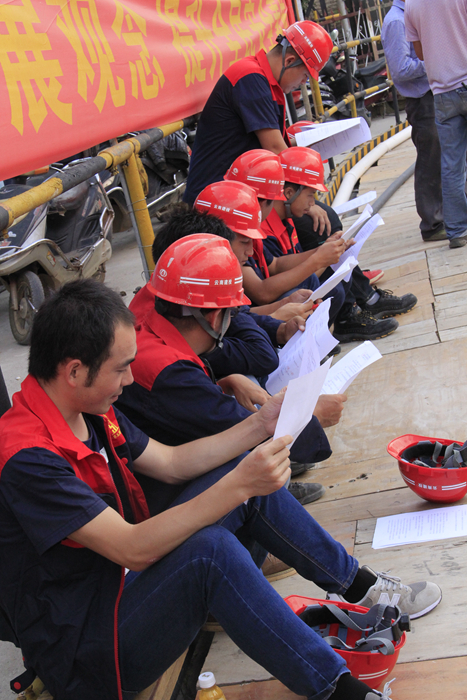 海源財富中心項目部采用競賽方式,以班組為團隊,設(shè)有4個評委,設(shè)置一、二、三等獎,共組織了管理人員、木工班組、混凝土班組、鋼筋班組、架子工班組、材料工等6個團隊參加,每個團隊15人;天威云變項目部則采取有獎問答方式舉行。兩個項目部共計146人賽,共發(fā)放了280份獎品?;顒蝇F(xiàn)場氣氛活躍,反響熱烈,為直管部進一步推動“普及法律知識、強化維權(quán)意識,促進和諧發(fā)展”及進一步提升施工現(xiàn)場人員的安全素質(zhì),營造良好的安全發(fā)展環(huán)境氛圍提供正能量。