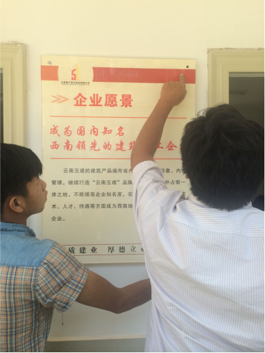 宣傳標牌內容有企業(yè)文化理念、“五講”教育、經營管理理念、“五位一體”管理理念、黨風廉政思想、“愛崗敬業(yè)、珍惜崗位、誠實守信、依法經營”企業(yè)核心價值、公司獲魯班獎項目展示以及各個科室崗位職責。所有標牌都根據(jù)公司統(tǒng)一標準制作,整齊地懸掛在直管部辦公室樓梯間、走廊上及各科室顯眼位置。同事們都說:“標牌安裝起來,整個直管部的企業(yè)文化氛圍更濃了,更漂亮了!”