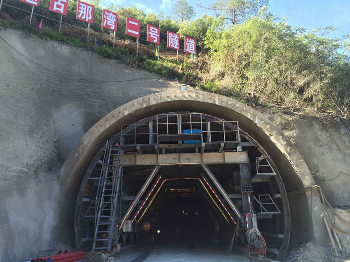 6月1日,古那灣2號(hào)隧道右洞二襯臺(tái)車經(jīng)過(guò)10天的組裝,成功安裝完畢。