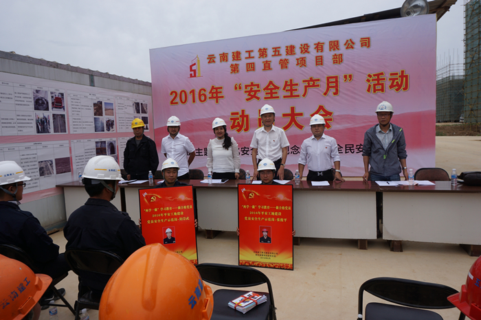 技術(shù)支持: 方森科技 2016年6月5日上午,在保山市中等專業(yè)學(xué)樣遷建項目宿舍樓工地現(xiàn)場,結(jié)合公司安全生產(chǎn)月活動的開展,第四直管項目部黨支部啟動了“兩學(xué)一做”學(xué)習(xí)教育活動——做合格黨員2016年平安工地建設(shè)活動。