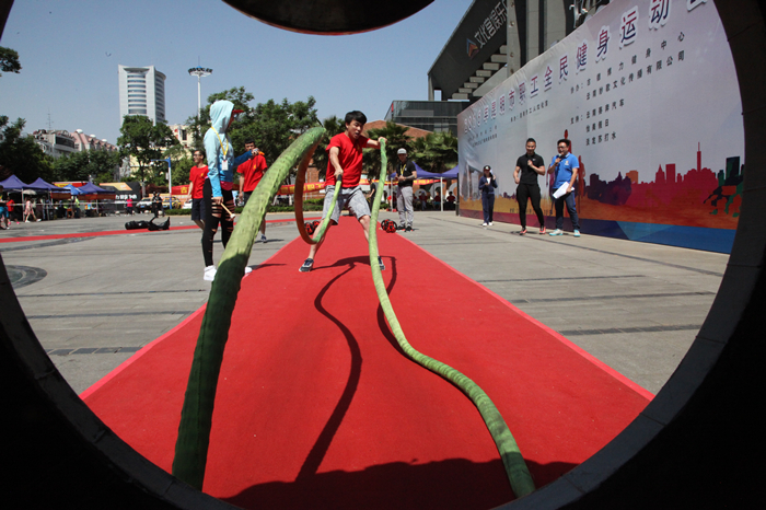 直管部張毅、鄒繼、左偉奇以團體賽的方式進行了比賽,三人分段共同完成了賽道任務(wù),其中包括跳繩30個、俯臥撐10個、翻滾輪胎2個、恒定阻力動感單車快騎30秒、杠鈴挺舉20公斤5次、仰臥起坐20個、定高甩繩15秒等。在比賽中,隊員們爭分奪秒,使出了渾身解數(shù),最終以2分25秒的成績完成了整個賽道任務(wù)。