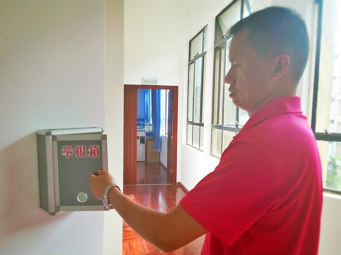 技術(shù)支持: 方森科技 近日,公司路橋二部的辦公室門口多了一個鐵箱子,上邊白底紅字的寫著“舉報箱”。職工可以往箱子里投遞舉報信件,向直管部紀(jì)檢小組反映干部違紀(jì)問題。直管部職工了解了舉報箱的用處后,說:“比起當(dāng)面檢舉,寫信投遞的方式更能讓職工說出心里話?!?