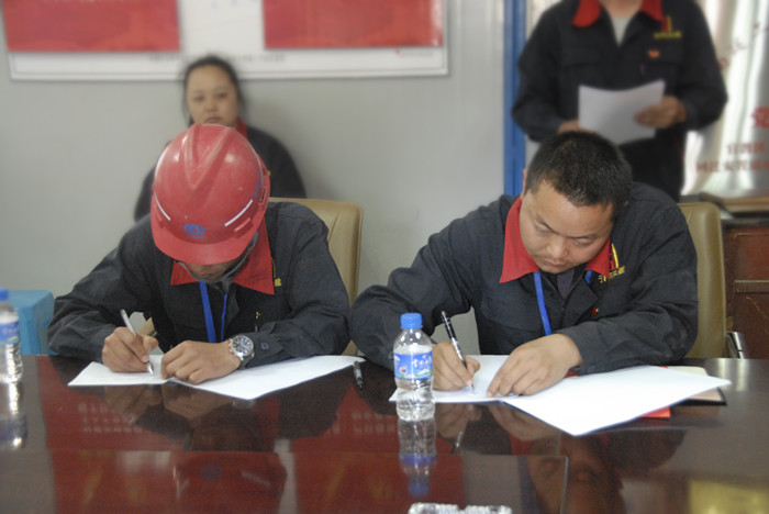 會(huì)上,李興奎、施文鐘為項(xiàng)目授予“黨建示范工地”牌匾,并為項(xiàng)目一線黨員發(fā)放“黨員示范崗”標(biāo)志牌。項(xiàng)目臨時(shí)黨小組黨員現(xiàn)場(chǎng)宣讀了承諾書(shū)。項(xiàng)目經(jīng)理李朝松與年輕員工簽訂了《黨員帶徒責(zé)任書(shū)》。