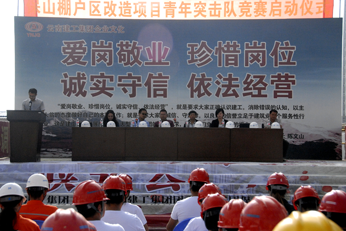 活動(dòng)中,周炳軍作了動(dòng)員講話,并從找準(zhǔn)結(jié)合點(diǎn)、落實(shí)著力點(diǎn)、培育閃光點(diǎn)三個(gè)方面對(duì)青年突擊隊(duì)提出了要求;保山市棚戶區(qū)改造項(xiàng)目指揮部指揮長(zhǎng)施旭升對(duì)競(jìng)賽的相關(guān)工作做了安排;楊瑜宣讀了青年突擊隊(duì)競(jìng)賽方案,競(jìng)賽從五位一體、創(chuàng)新、育人、形象方面開(kāi)展,既可以更好地促進(jìn)工作任務(wù)的完成,還能打造出一支朝氣蓬勃的青年人才隊(duì)伍。隨后,來(lái)自四公司、五公司、七公司、總承包公司、十公司、云海公司的青年突擊隊(duì)隊(duì)長(zhǎng)依次上臺(tái)作了表態(tài)發(fā)言,并由參會(huì)領(lǐng)導(dǎo)向各參賽隊(duì)伍授予“青年突擊隊(duì)”旗幟。隊(duì)員們揮舞起自己的隊(duì)旗,激情的口號(hào)聲在工地響起,啟動(dòng)儀式圓滿結(jié)束。