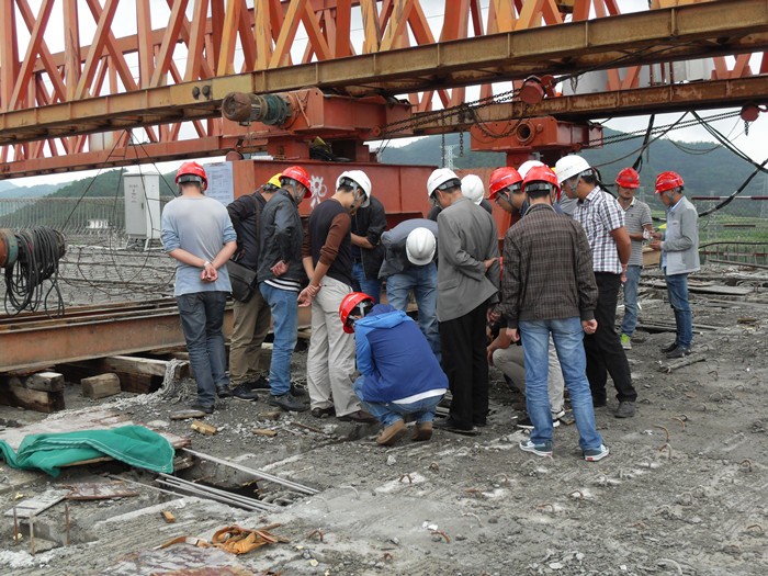 當天下午,路橋二部參觀了呈澄高速第六工區(qū)項目部辦公室及施工現(xiàn)場。辦公室分為技術(shù)、試驗、計量、安全、測量等科室,各科室分工明確,所有資料都擺放整齊,資料的填寫都很規(guī)范、嚴謹、細致,所有技術(shù)資料都用手寫,實驗資料也細致到每一種材料、每一道工序,這也是與房屋建筑存在不同的地方。隨后,大家又參觀了由四公司施工的一座大橋,大橋兩端已施工完畢,剩下中間部分兩至三跨橋由于受高壓線的影響還沒有進行施工,現(xiàn)場專業(yè)技術(shù)人員對橋面的施工及大家提出的問題都進行了詳細的講解。