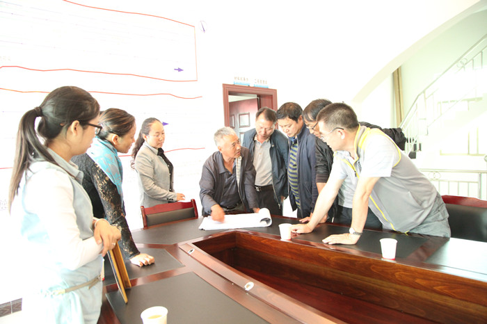最后,李文智一行來到哨關路工程六工區(qū)項目駐地,當看到哨關路規(guī)劃效果圖和施工總平面圖時,李文智對項目經(jīng)理王孝生說:“現(xiàn)在我們就是一年級的小學生,請你來教教我們怎么看圖,這些符號都代表什么意思?!表椖坎抗芾砣藛T就“房建”和“路橋”從專業(yè)術語到施工進場、測量儀器的選擇、臨時設施和生產(chǎn)場地的劃分、施工工藝方法的不同之處與李文智一行進行了交流和探討,現(xiàn)場氣氛十分熱烈,不啻為一堂別開生面的路橋?qū)I(yè)培訓課。